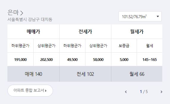 제가 KB부동산 시세 조회서비스를 운영하면서 가장 큰 장점이라고 생각됐던 부분은 바로 통계자료입니다. 각 매물별로 실거래가를 통해서 그 지역의 시세가 어느정도 인지, 매매는 어느정도고 전세는 어느정도 인지 등을 통계자료를 통해서 볼 수 있다는 점이에요. 그렇다고 해서 통계자료가 모르는 사람이 봤을 때 이해하기 어려운 것도 아니고 관련 요소들을 세부적으로 알 수 있다는 장점을 가지고 있어요.