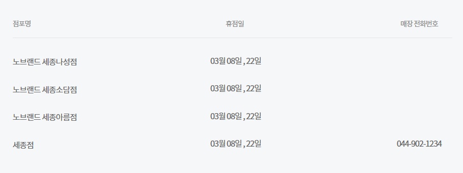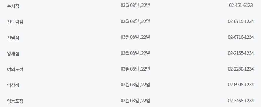 휴무일이 다른 매장