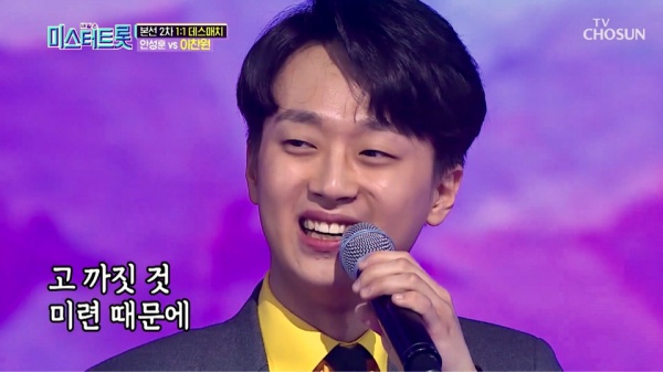 가장 최근에 방영한 회차에서는 임영웅군이 인기순위에서 1위를 했는데요! 설운도님의 보랏빛 엽서를 불렸는데… 정말 심장을 어루만지는 듯한 그 애절한 목소리는 어디서 나오는 지 모르겠어요! 2위는 잃어버린 30년을 부른 이찬원군이 차지했습니다. 원곡자인 설운도님이 아주 극찬을 하더라구요. 훈훈한 외모에 노래까지 잘 부르니 엄친아가 따로 없습니다. 3위는 트로트 가수인 영탁님, 4위는 유소년부였던 정동원군, 5위도 유소년부 남승민군이 차지를 했습니다.