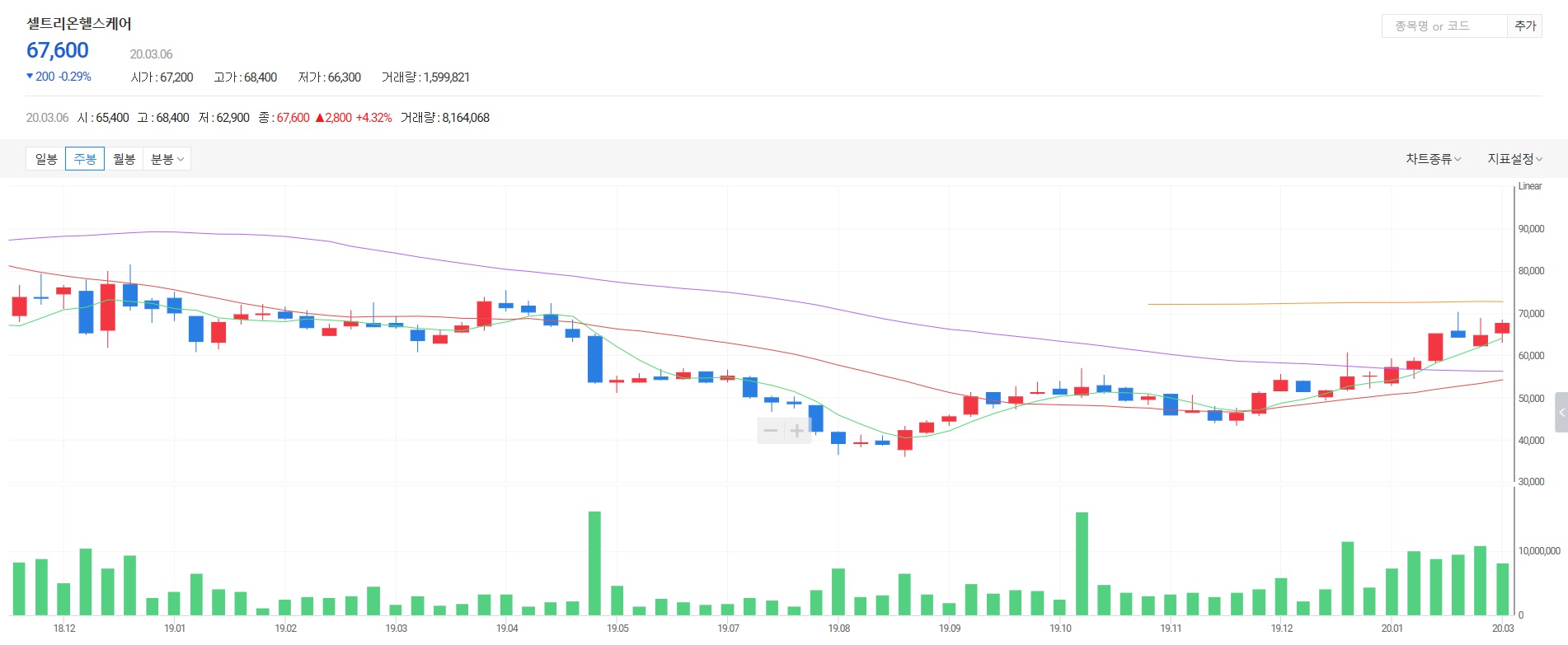 셀트리온 헬스케어 주가는 현제 67,600원을 기록하고 있습니다. 이는 반년가량의 기간동안 계속해서 우상향을 기록하면서 도달한 성장도 이기도 합니다. 특히나 앞서 언급했든 최근 셀트리온이 계열 3사의 합병을 계획하면서 주가가 급등하고 있는 기업인데요. 평상시 100만주가량에 머물던 거래량이 800만주 가까이 큰폭으로 늘어나면서 큰 기대감을 부여받고 있기도 합니다. 그렇다면 셀트리온, 셀트리온 헬스케어, 셀트리온 제약의 합병이 어떤 작용을 하기에 주가의 급등에 영향을 주고 있는지 상세히 살펴볼게요.