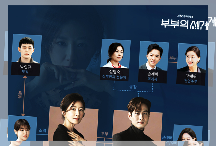 안녕하세요~ 오늘은 ‘부부의 세계’라는 드라마를 소개해보려고 합니다. JTBC에서 금토 드라마로 3월 27일에 첫방송을 하는 드라마 ‘부부의 세계’는 김희애와 박해준이 주연으로 출연한다는 소식이 전해지면서 더욱 큰 관심을 받고 있습니다. 이경영, 김선경 같은 배우들까지 함께하는 만큼 연기력만은 의심할 여지가 없는 작품이 되리라 예상이 되고 있습니다. 그럼 각 인물간의 관계나, 각 인물의 설정들을 주연들 중심으로 해서 살펴보도록 하겠습니다. 본 포스팅은 ‘부부의 세계’ 공식 홈페이지의 자료를 참고하고 있음을 알려드립니다.