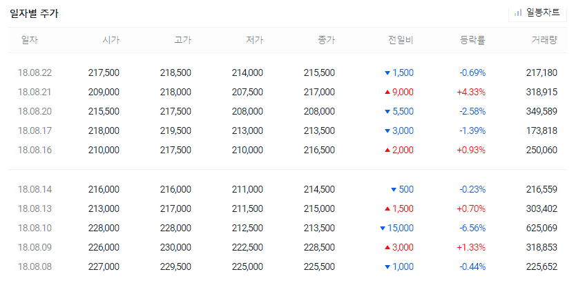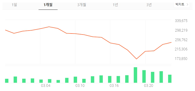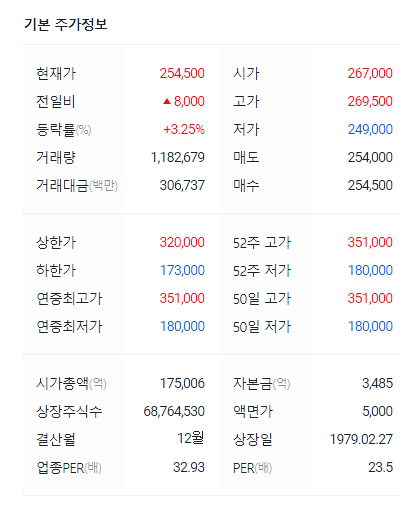 금읠 삼성SDI의 주가는 256,500원을 기록하고 있습니다. 불과 몇일전만해도 근 1년이래 최저점인 180,000원을 기록하면서 많은 이들의 불안을 야기했습니다. 하지만 바로 그 최저점이 반등의 분기점이었었던 것으로 보입니다. 최저점 이후로는 날이갈수록 점차 성장세를 보이며 크게 회복하고 있습니다. 근 1년중 최고가가 351,000원이었던 것을 생각해본다면 평균치까지는 회복중인 것으로 그래프가 나타나고 있습니다.