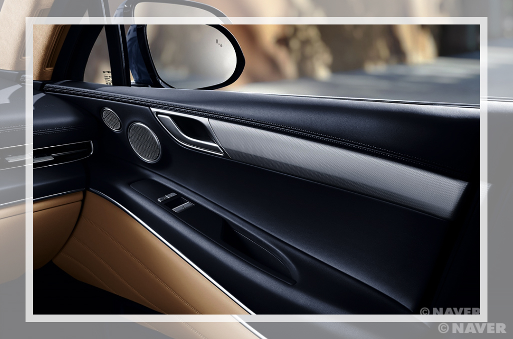 제네시스의 외관에서 볼 수 있었던 제네시스의 가장 큰 변화는 프론트 그릴과 램프들의 디자인일 것입니다. 이번에 새롭게 적용된 크레스트 그릴은 전면부에 큼지막하게 자리잡에 제네시스GV80의 전체적인 이미지를 대변하고 있는데요. 무게감과 고급스러움이 느껴지는 크레스트 그릴은 제네시스GV80에 고풍스러운 이미지를 더하고 있습니다. 더불어 상단과 하단으로 분리된 쿼드램프는 해드램프와 리어램프 모두에 적용되어 있는데 어쩌면 프론트 그릴로 인해서 고지식해 보일수도 있는 차량의 이미지를 세련되게 만들고 있습니다. 최근 출시된 G80에서도 해당 디자인이 적용되어 극찬을 받고 있습니다.