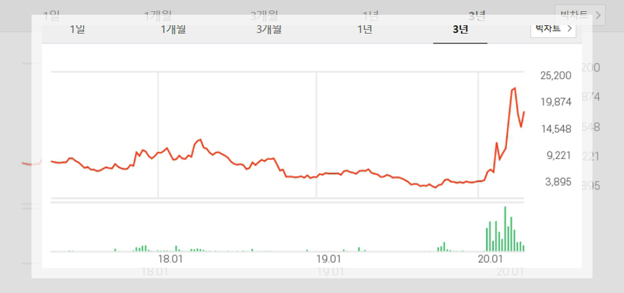 랩지노믹스의 현재 주가는 20,200원을 기록하고 있습니다. 연일 상한가를 기록하고 있는 랩지노믹스의 1년중 최고가는 최근에 기록한 26,800원입니다. 코로나19 사태가 발생하기 전에는 불과 4,000원대의 주가를 기록하고 있었던 것을 고려한다면 정말 급격한 성장세를 보이고 있음을 알 수 있습니다. 최근에서 잠깐 주춤한 분위기를 보이기는 했지만 미국 FDA의 승인을 목전에 두고 있는 만큼 다시 급성장세를 이룰 것으로 예측되고 있습니다.
